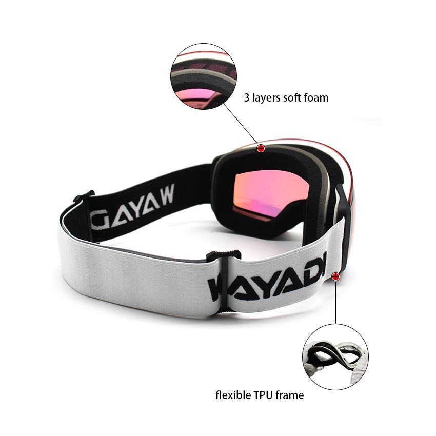 Tiga lapisan buih berketumpatan tinggi, meningkatkan perasaan selesa, dan mengekalkan pengudaraan udara yang baik, menjadikan kanta kering. bingkai TPU lembut, boleh muat topi keledar ski dengan baik.